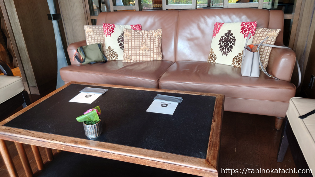 クラブラウンジは、ロビー階の1つ上にあります。ホテルの建物としては4階に位置するようです。運よく、個室のブースがあいていましたので、そちらに通していただいて、手続きを行いました。