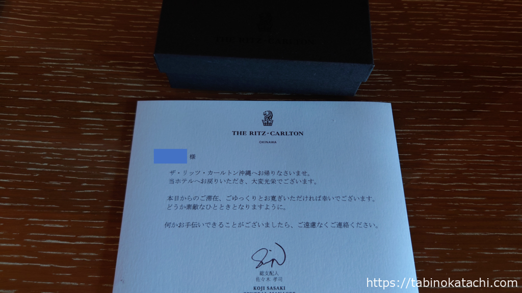 今回は、再訪でしたので、ホテルからのメッセージにも、「お帰りなさい」と、お気遣いがあります。こういった一言に、キュン♪となってしまう我々夫婦です。
