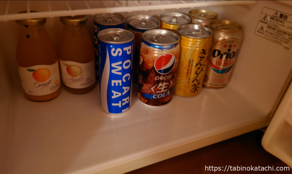 一方で、冷蔵庫は、TVの下にあり有料です。とはいえ、ホテルのミニバーにしては、かなり良心的な料金だとおもいます。私達は、クラブラウンジで飲み放題だったので、全く手をつけることはなかったのですが・・・(笑)
