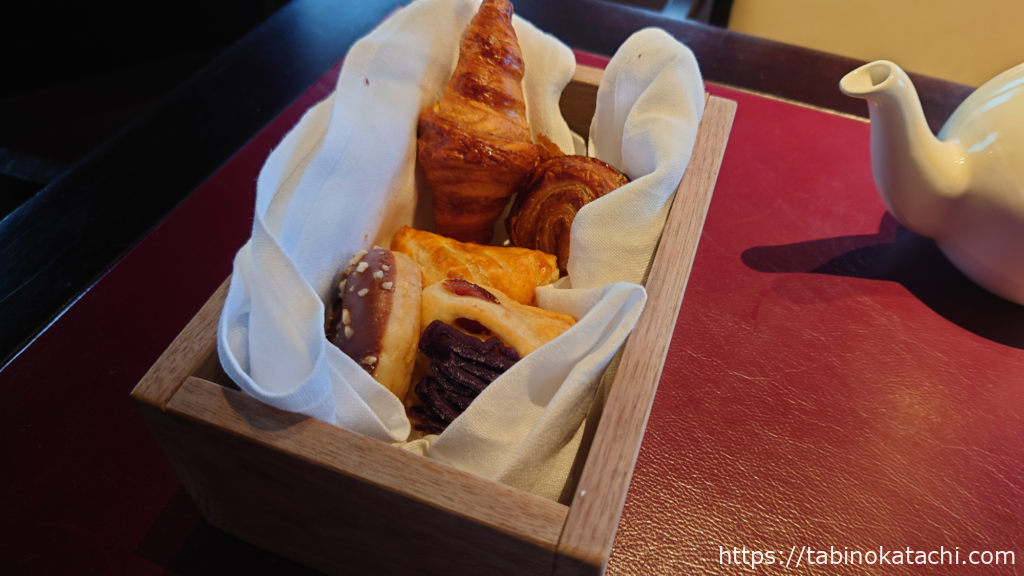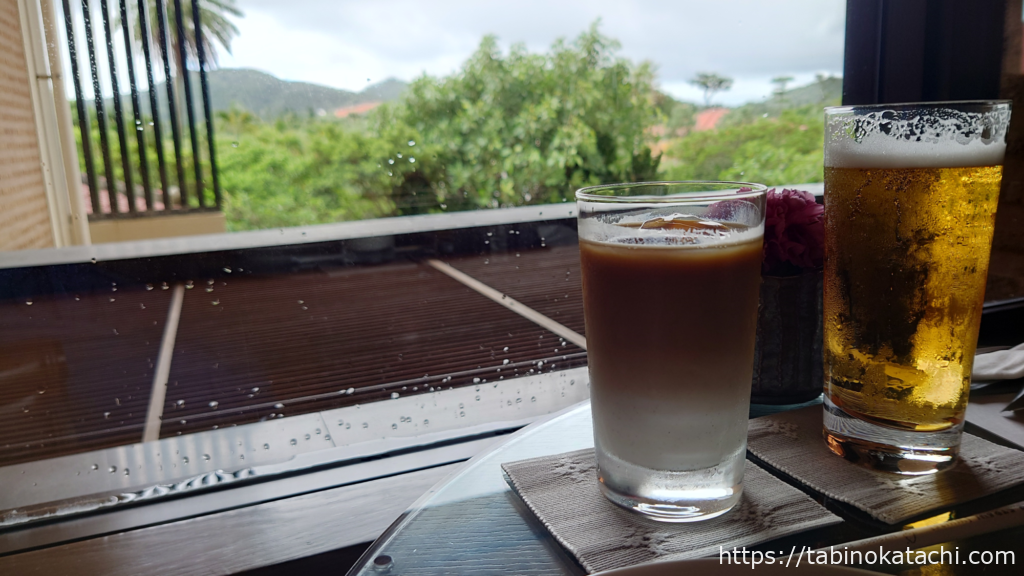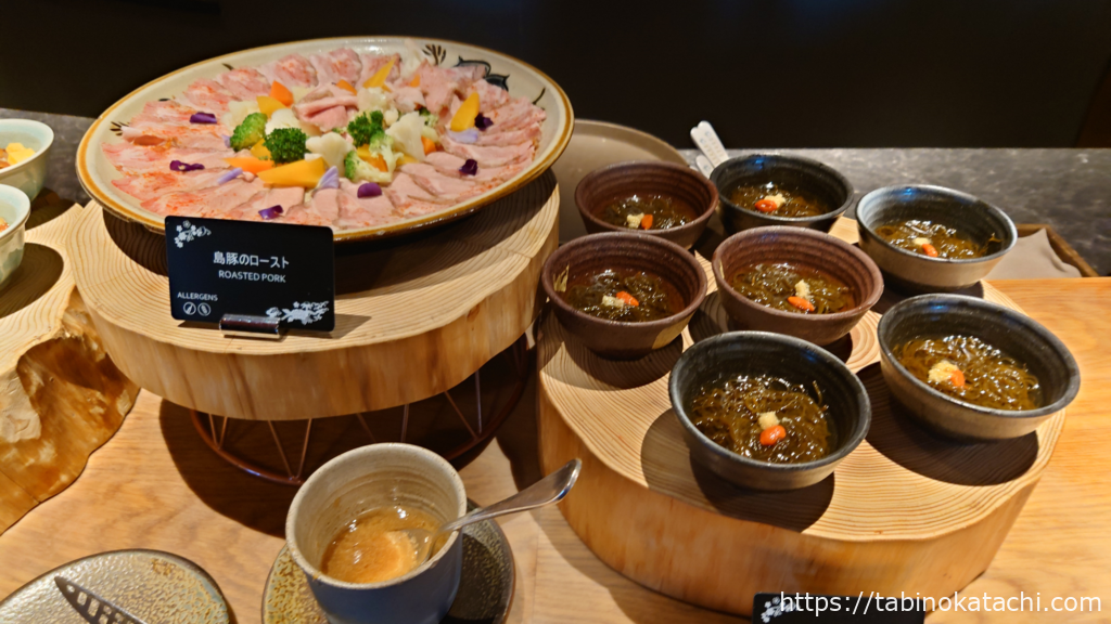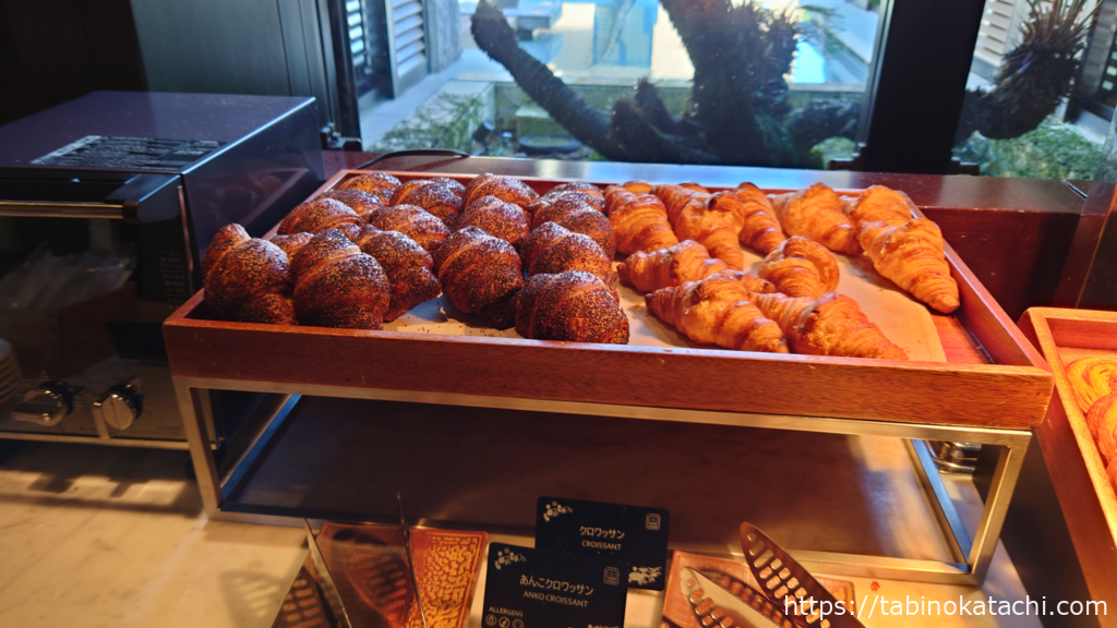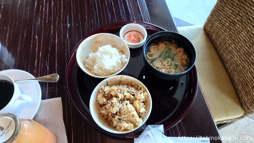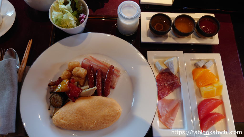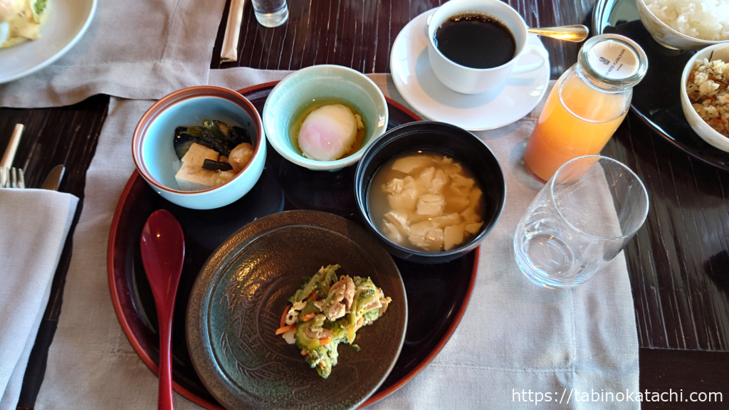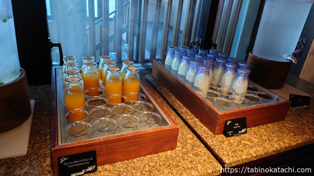 グスクでの朝食は、ビュッフェスタイルです。ドリンクだけ、希望をきかれてサーブいただける形式です。メニューの種類は、クラブラウンジの提供より多いので、好きなものを、適切な量でいただけるという意味では、こちらのほうが、私達的にはよかったです。