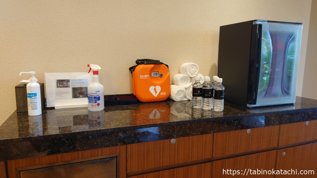 ジム利用のみだったので、お部屋で着替えていきましたが、プールと同じ階に、ロッカールームもあるので、こちらで着替えることも可能です。水着の脱水用マシーンも用意されているのでいいですね。