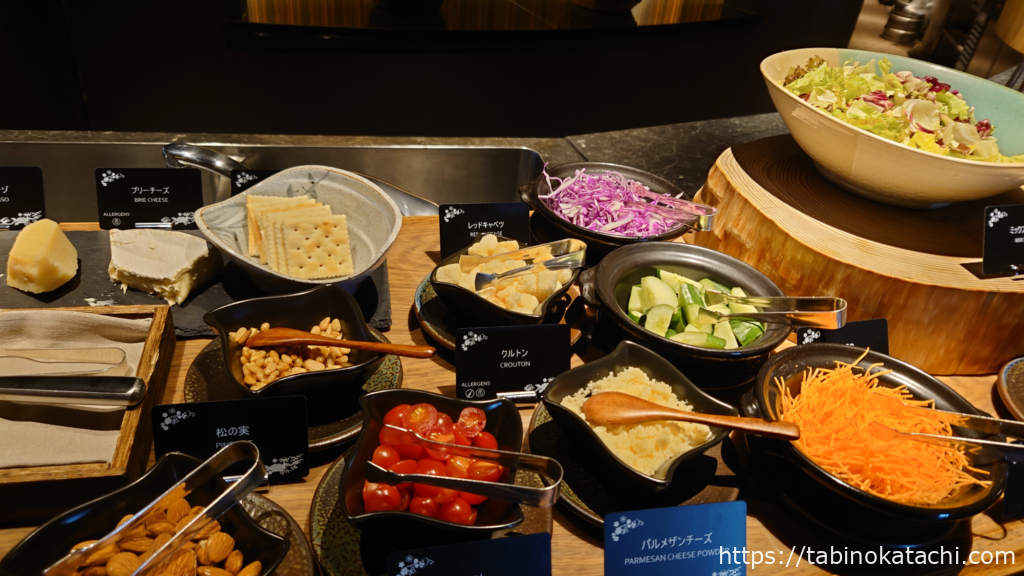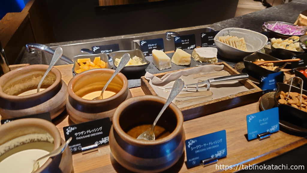 洋食は、卵料理のオムレツ、サラダ、チーズ、フルーツ、ヨーグルトと定番メニューが並びます。ブレッドも、種類が多く、安定の美味しさです。