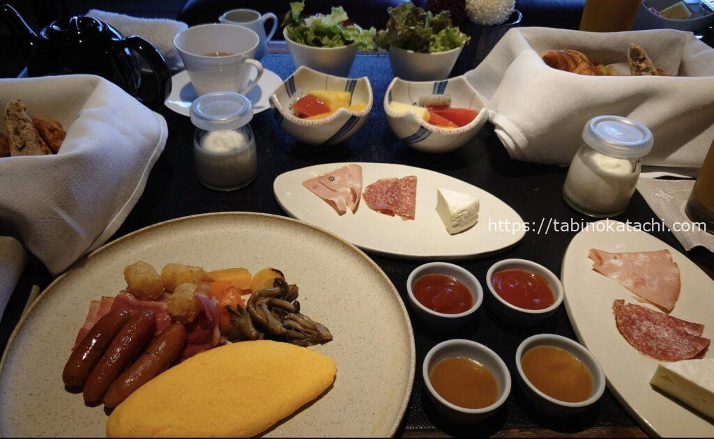 運動のあとは、朝食。この日は、クラブラウンジでの朝食をお願いしていました。2つある個室のひとつがあいていたので、個室でいただきます。私と息子は洋食、あめおくんは和食です。どちらも種類・お味とも大満足。