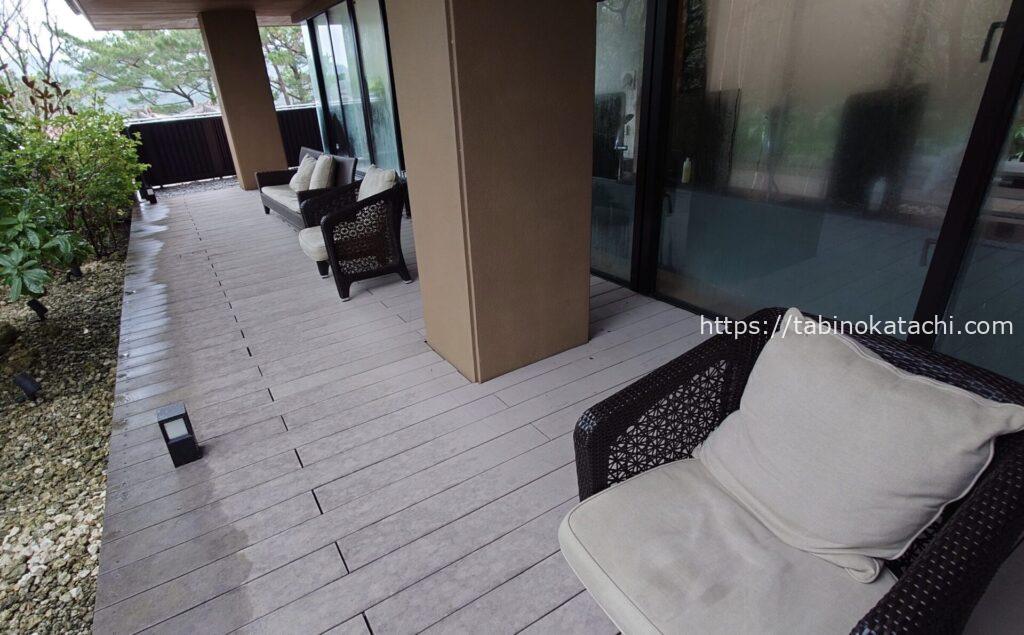 朝から雨でした。予約していたヨガは、ホテル棟とスパ棟を結ぶ間の通路で実施されました。通路なので、スパ棟に行かれる方が、通られることもありますし、少しジメジメしている感じで・・・。