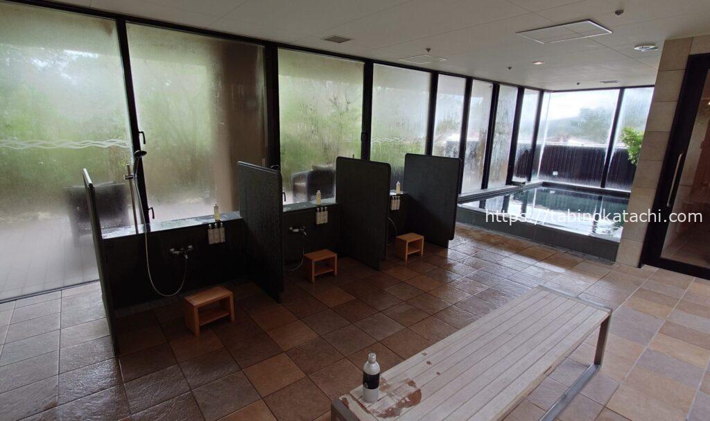洗練されて清潔な更衣室、サウナ、岩盤浴などがそろっています。お風呂は温泉ではありませんが広くて、快適。これで、水風呂があれば最高だよねという話を、男子チームともしていたのですが、男性側は少し広いのか、外気浴スペースもありました。いいなぁ。