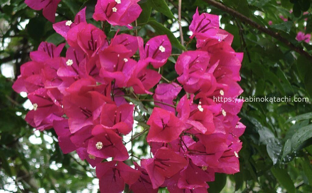 ブーゲンビリアの咲き乱れる道を進んだ先にある、プールやジムと同じ棟にあります。