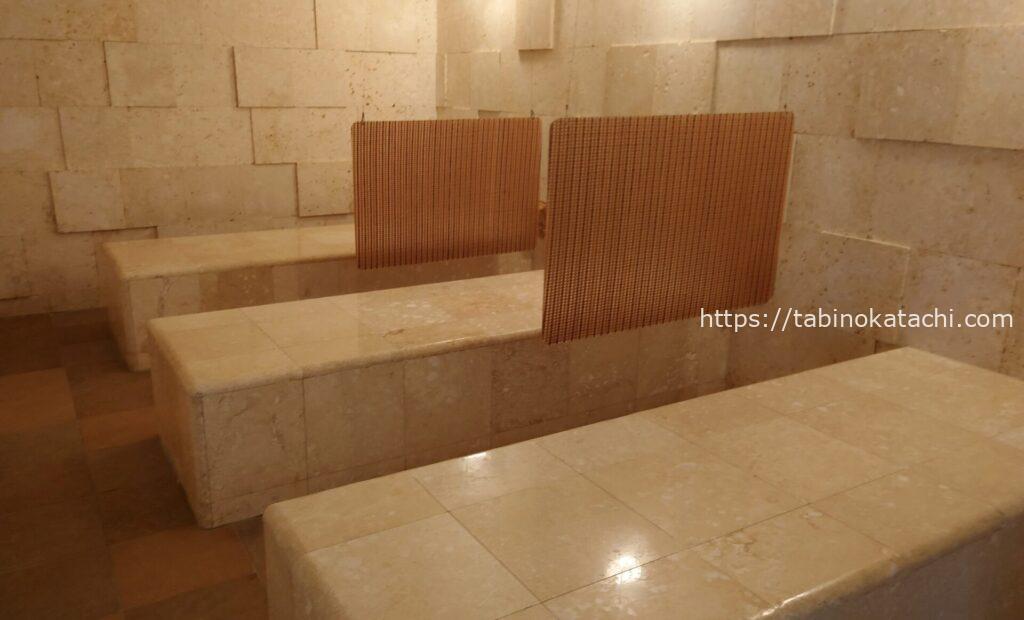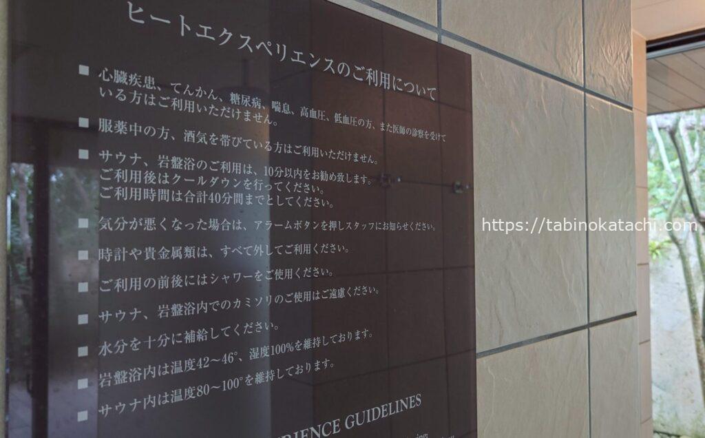 今回の滞在で楽しみにしていたことのひとつ。ヒートエクスペリエンス。温浴施設という意味です。なんと、リッツカールトン沖縄のヒートエクスペリエンスには、サウナと岩盤浴があるのです!サウナーの我が家にとっては、神施設といっても過言ではない!施設です。