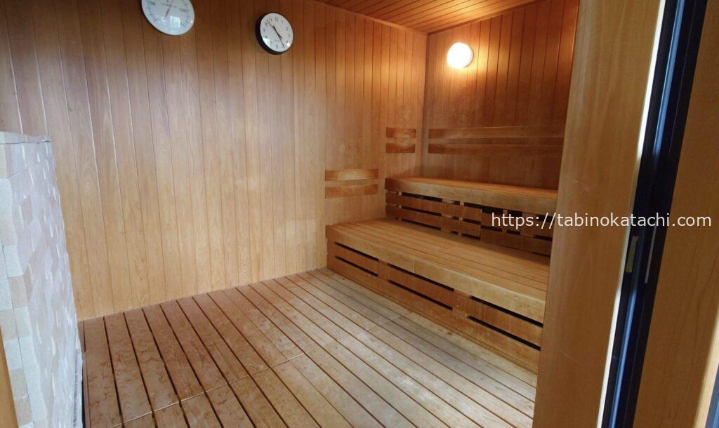 洗練されて清潔な更衣室、サウナ、岩盤浴などがそろっています。お風呂は温泉ではありませんが広くて、快適。これで、水風呂があれば最高だよねという話を、男子チームともしていたのですが、男性側は少し広いのか、外気浴スペースもありました。いいなぁ。