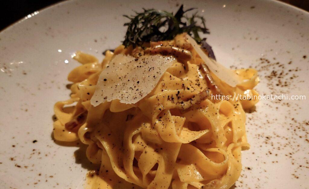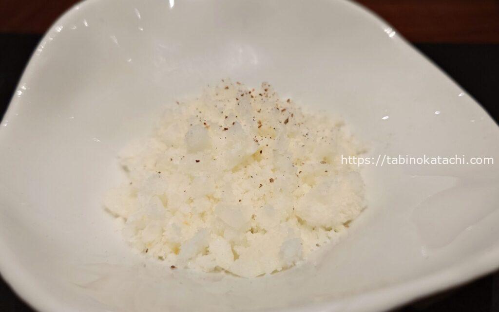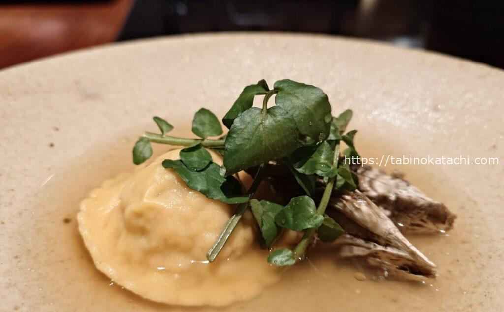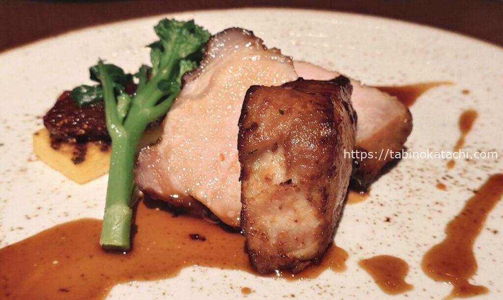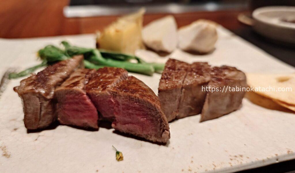 瑞穂農場は、日本最大級の規模を誇る「生産牧場」です。「瑞穂牛」と呼ばれるブランド牛が生産されています。柔らかくてしっかりとした旨味のあるお肉。わさびとお塩、ポン酢、シェフ特製のソースなどで味変しながら、大変美味しくいただきました。