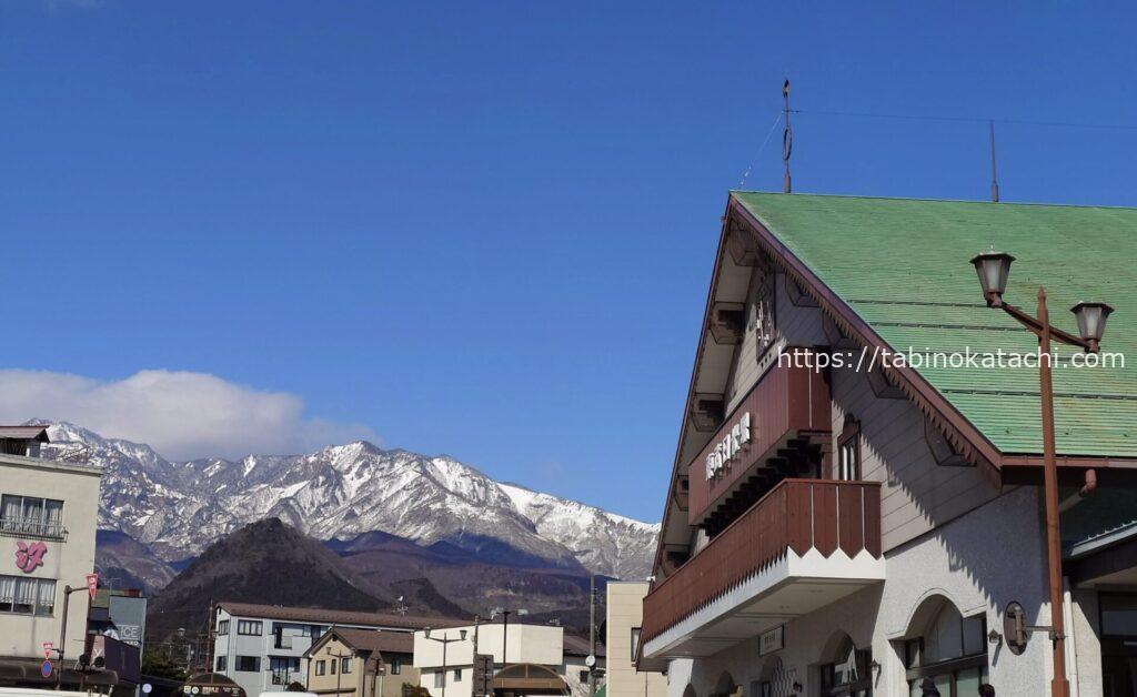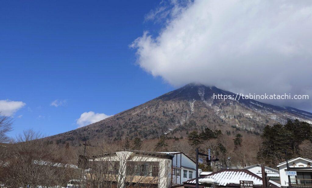 お部屋からの風景。新緑の頃は、木々に隠れて見えなかったのですが、冬は男体山が、はっきりみえます。滞在中は本当にお天気に恵まれて、何十枚、お山の写真をとったことか😛