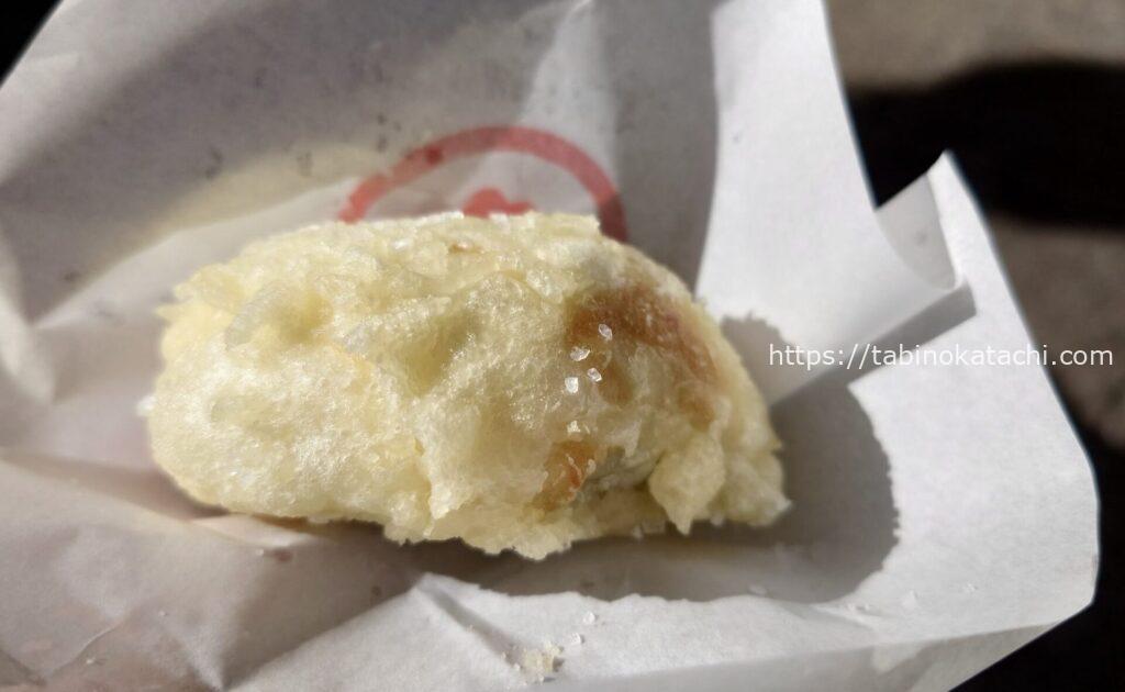 これが本当に美味しかったです。注文をうけてから揚げてもらえるので、揚げたて熱々で、衣も驚くほどサクサクです。中には、なめらかなこし餡がたっぷり詰まっていて、生地に振られたお塩と、甘みのバランスが絶妙でした。