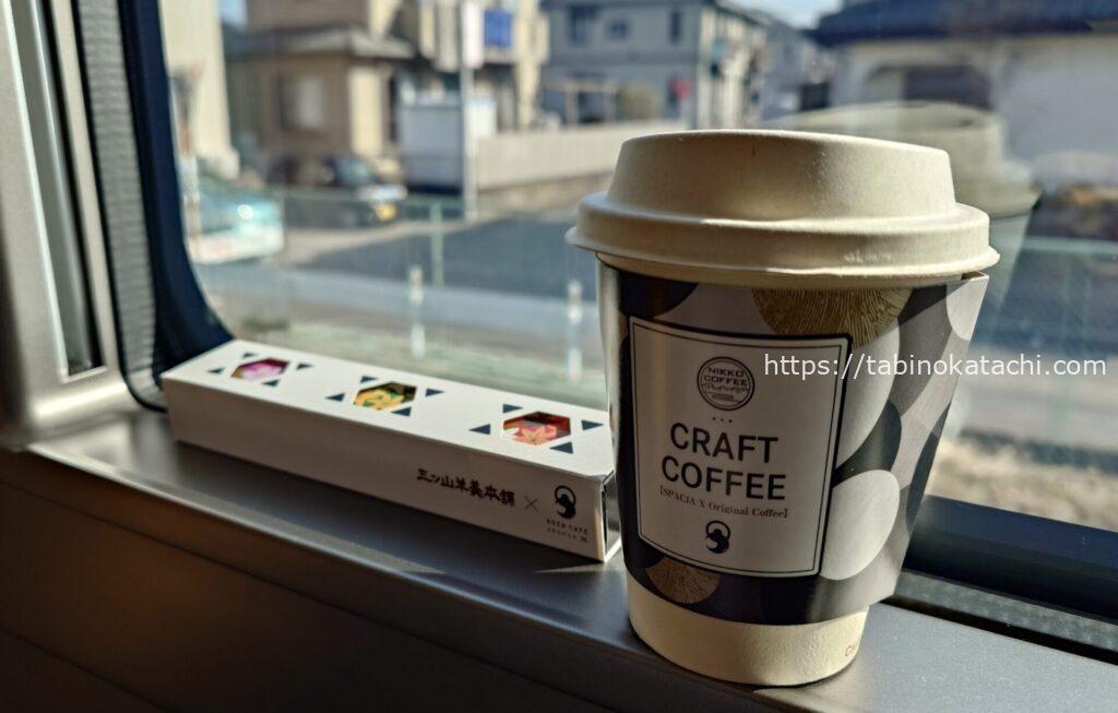 オンライン整理券の案内にあわせて訪問し、購入した珈琲と羊羹。
