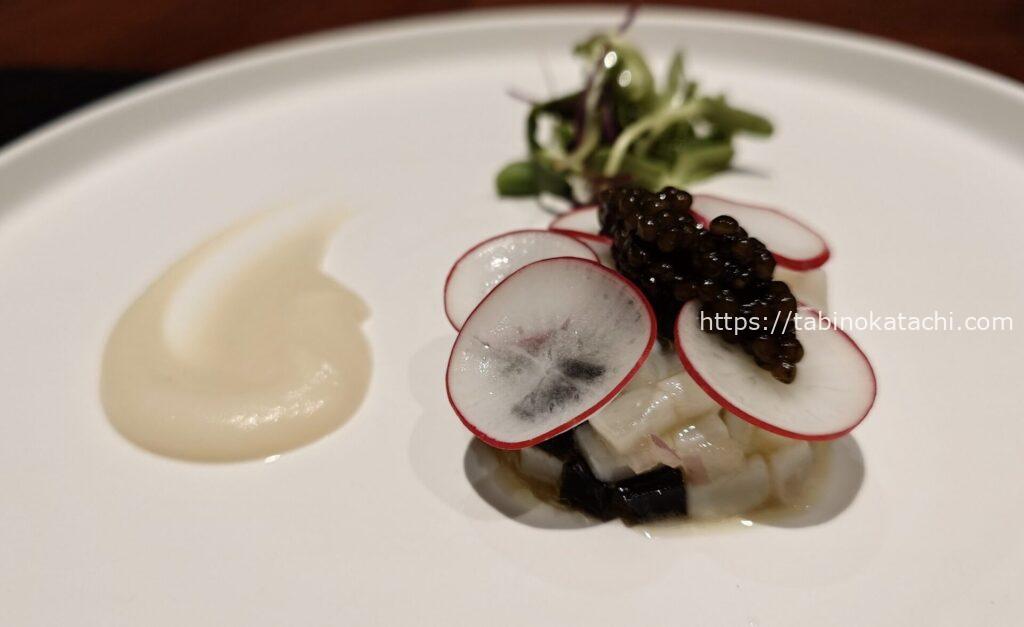 瑞穂農場は、日本最大級の規模を誇る「生産牧場」です。「瑞穂牛」と呼ばれるブランド牛が生産されています。柔らかくてしっかりとした旨味のあるお肉。わさびとお塩、ポン酢、シェフ特製のソースなどで味変しながら、大変美味しくいただきました。