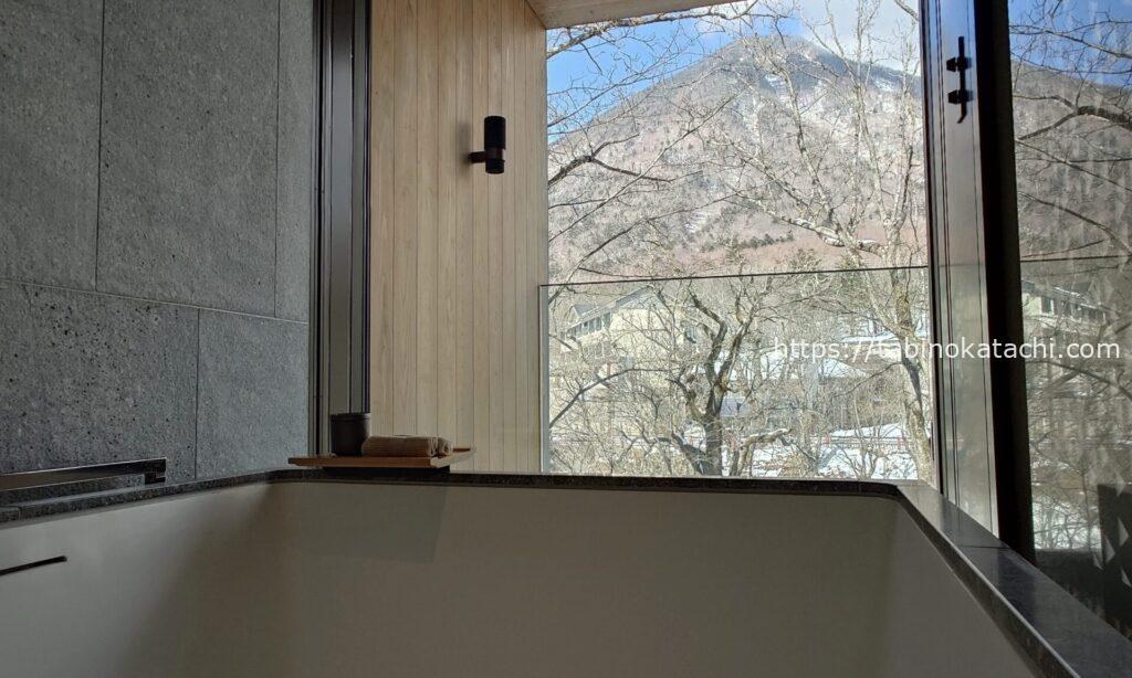 お風呂からは男体山が望めます。