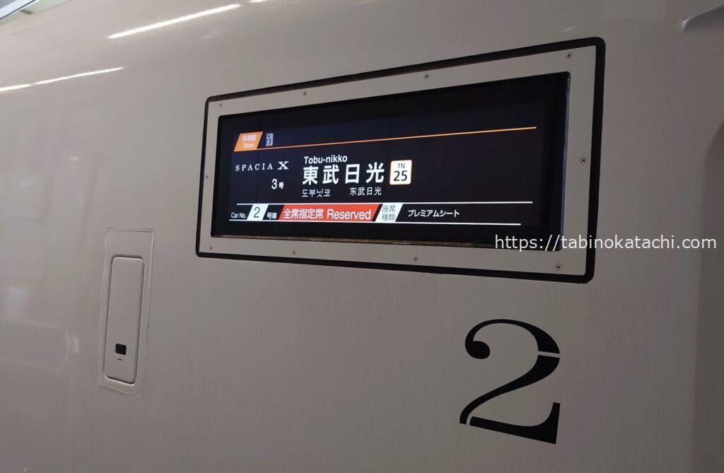 東武日光行き。今回予約したのは、2号車 プレミアムシート。