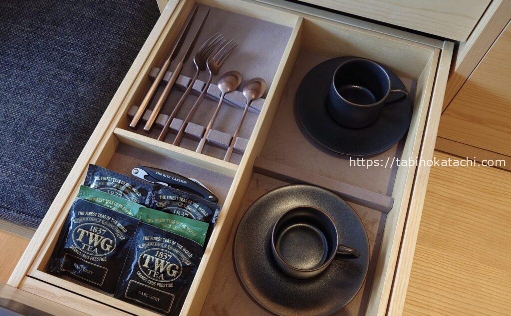 TWGのお茶も数種類用意があります。 TWGはシンガポールのティーブランドです。1837とパッケージにあるので、創業年かとおもいきや、実は、創業は2008年。1837年はというのは、シンガポール商工会議所がつくられ、お茶の貿易が始まった年へのオマージュなんだんそうです。おもしろい! 温故知新のように、歴史へのリスペクトと、新しい価値への創造を示しているですねぇ。