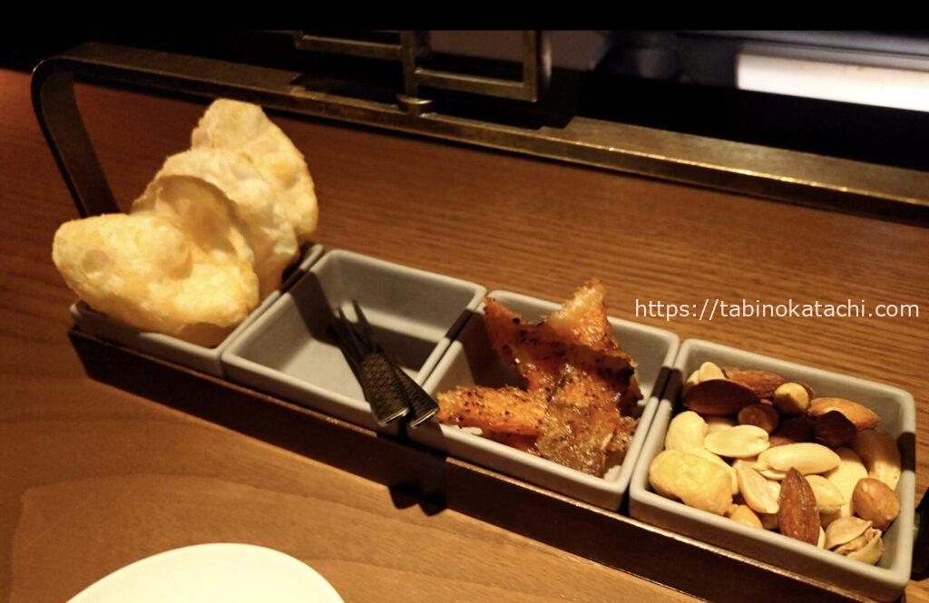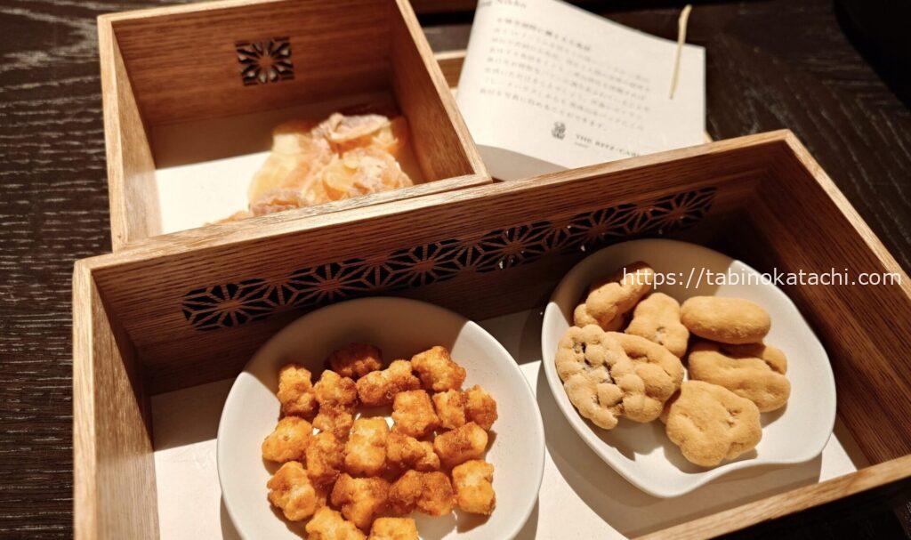 温かいお茶に、甘納豆のサービスがありました。