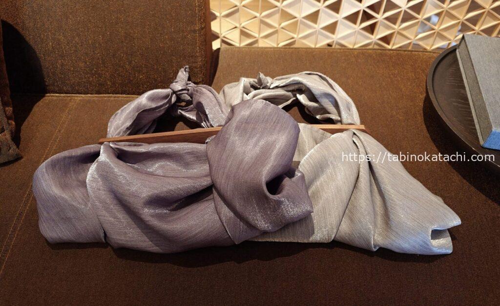 風呂敷を利用した温泉バック。素敵です。