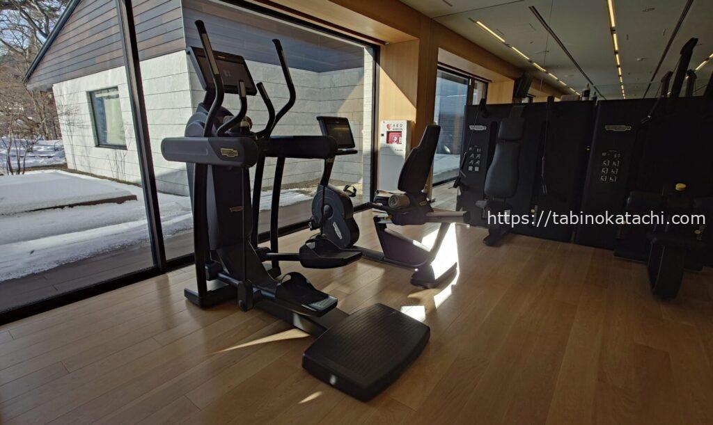 宿泊者は、24時間いつでも利用可能です。テクノジムのマシーンが導入されていて、ランニングなどの有酸素系から、筋肉系のトレーニングも可能。片側だけにはなりますが、窓が広くとられていて、ホテルのガーデンに面しています。建物と建物でしきられているので、目の前を人が通ることはなく、人目を気にせず集中してトレーニングできる環境にデザインされていると感じました。
