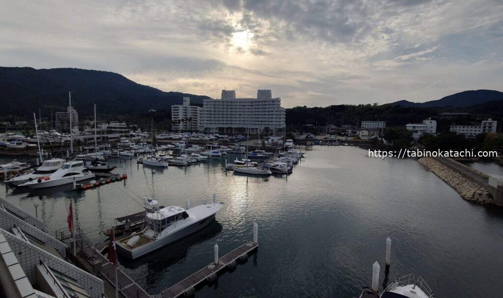 温泉が有名なホテルは、結構満室になっていて、ようやく落ち着いたのはこちら、洲本温泉 「海のホテル島花」。ホテルニューアワジ系列のお宿で、サントピアマリーナの目の前にあります。