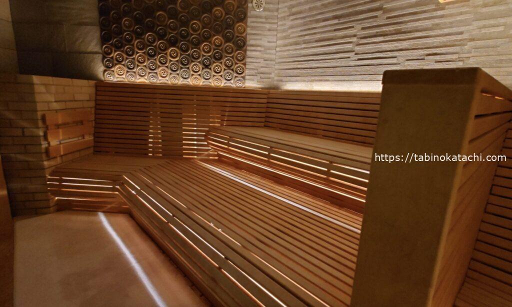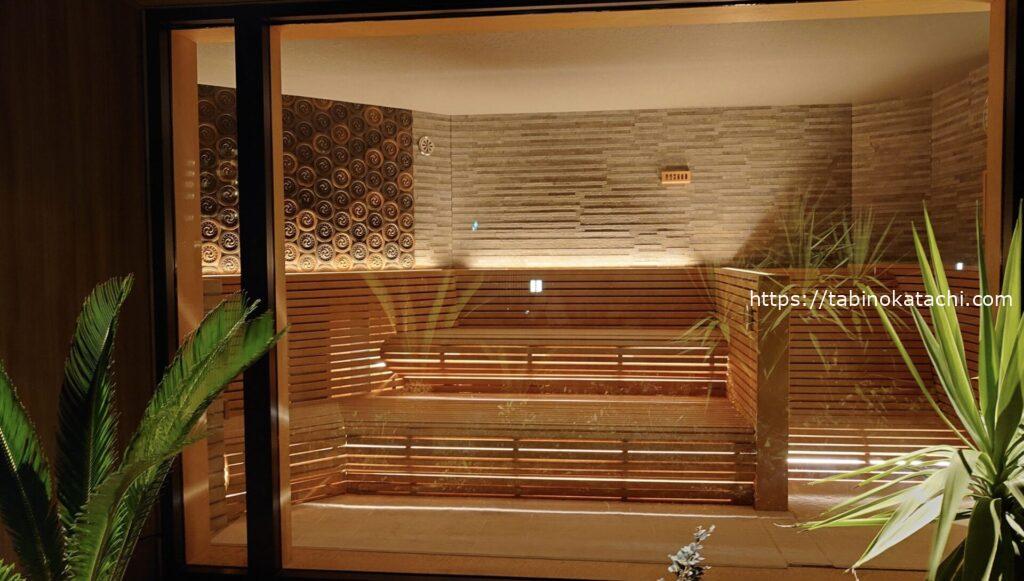 たまたま、他に利用されているゲストもいらっしゃらなかったので貸切。なんと贅沢。サ室の温度も90℃と十分な温度で、セルフロウリュウもできたので、湿度もバッチリ。夜のハーバーを望みながら、しっかりとメディテーションの時間。
