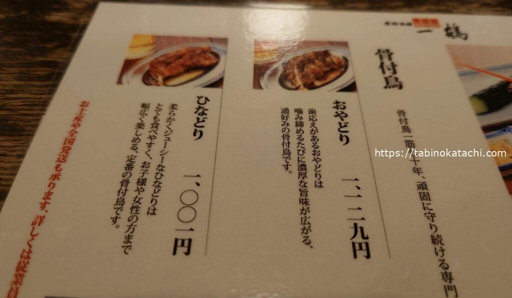 骨付鳥のメニューは、「おやどり」と「ひなどり」の2種類。