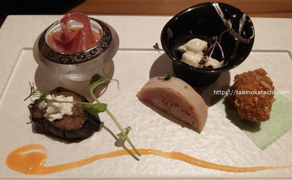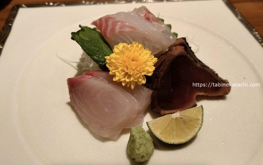 前菜の盛り合わせからはじまり、近海でとれたお魚のお刺身、秋鱧のしゃぶしゃぶ、牛フィレ肉のローストと、淡路島とその近隣の食材を美味しくいただきました。