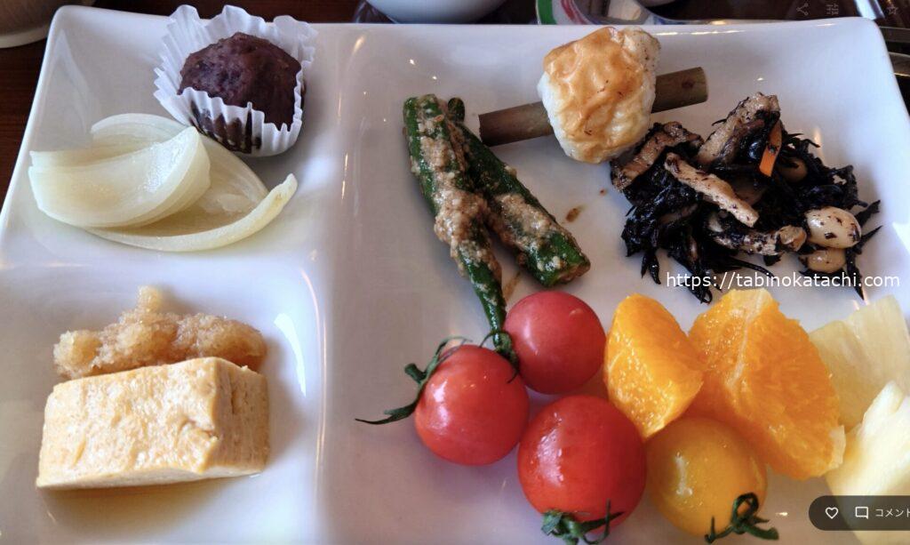 朝ごはんは、ビュッフェ形式で、お好みで好きなものをいただきます。