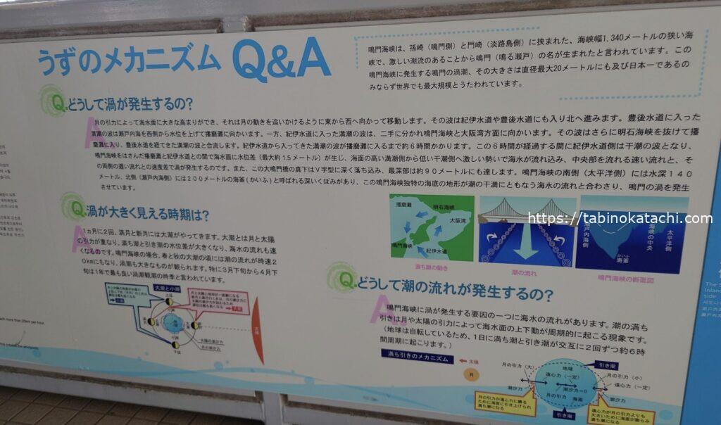 渦上45mから、渦潮がみられる施設で、うずのメカニズムの勉強になったし、なかなか見応えありました。渦潮は、いつでも見られるのではなく、満潮と干潮のタイミング前後になるので、渦の道のWEBページで、ぜひ、チェックして行ってみてください。