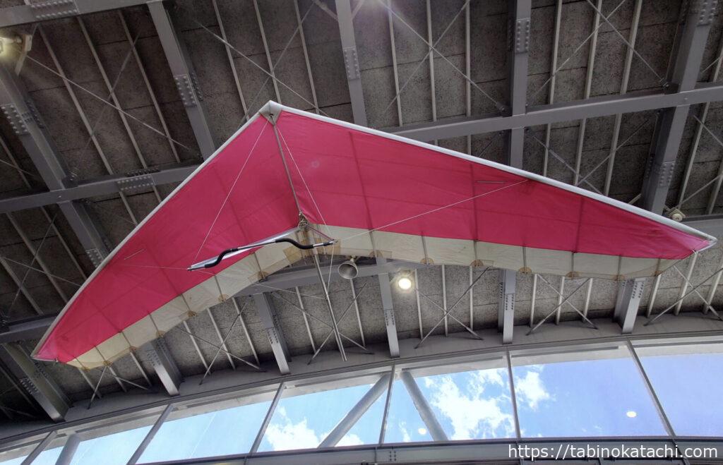 そうこうしているうちに、赤湯駅到着。国内有数のハンググライダーのフライトエリアである南陽市。赤湯駅の屋内にはパラグライダーがたくさんディスプレイされていました。