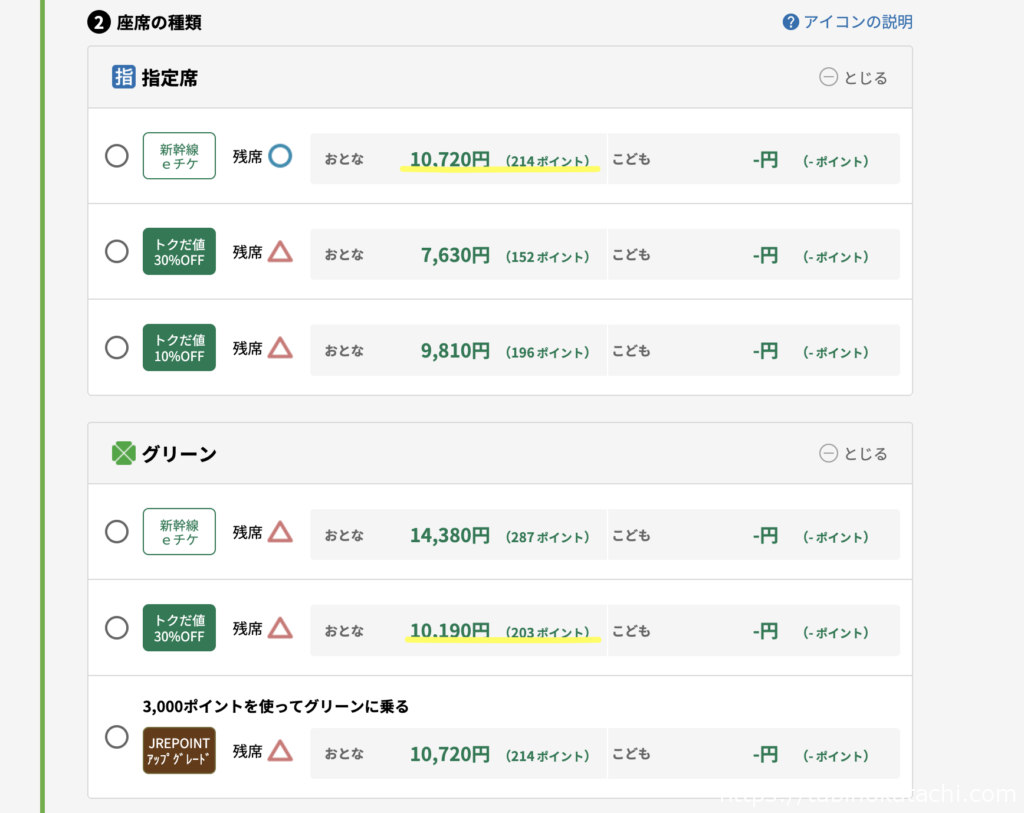 なんと、今回人生初めてのグリーン車。というのも、えきねっとで予約をしたら、指定席の割引なし料金より、30%割引料金が適用されたグリーン車の料金が安かったんですもの・・・。そりゃ、同じ料金だすならグリーン車えらびますよね。