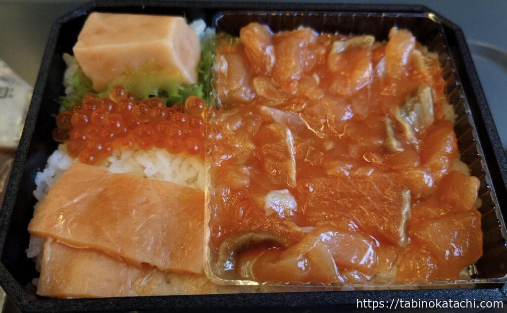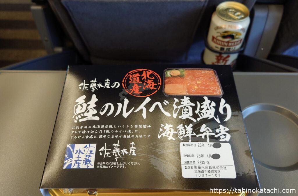 列車の旅といえば、駅弁。東京駅構内にある「駅弁屋 祭」で購入して乗車です。全国の駅弁が200種類以上おいてあるということから、多くの人で賑わっていました。選ぶのも迷います。あめおくんは、いつもの、北海道 佐藤水産のルイベ海鮮弁当。羽田でも札幌でも、佐藤水産をみつけたら迷わず選ぶ人だよね・・・。