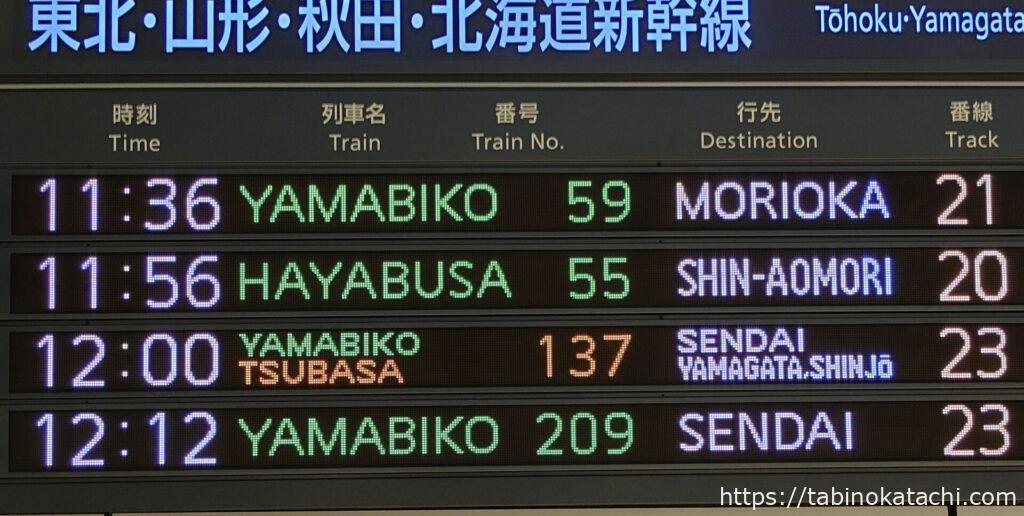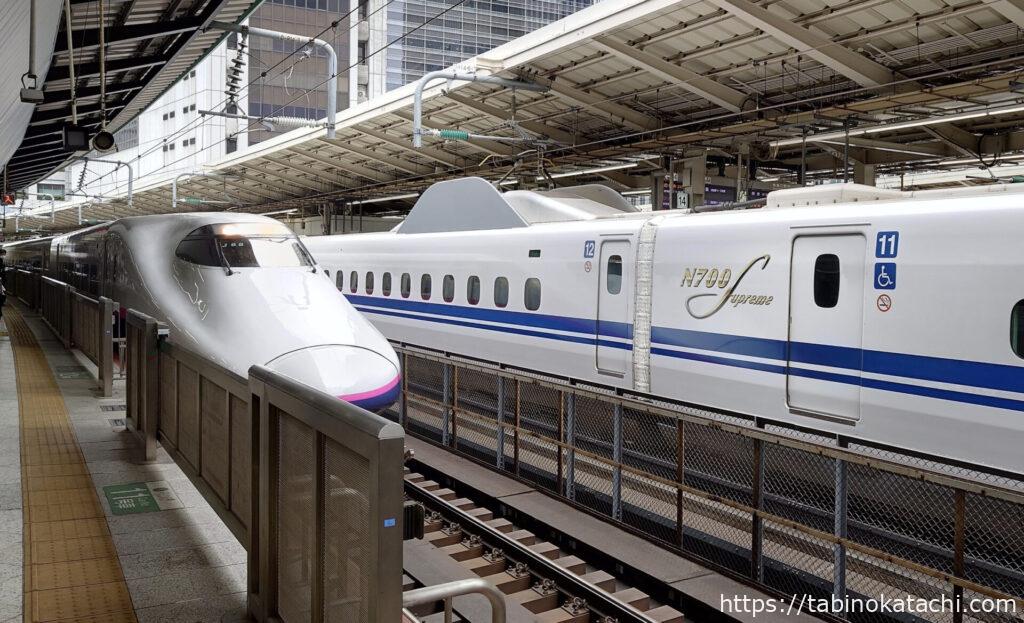 東京駅が始発の山形新幹線。「のぞみ700系」のおとなりに入線です。