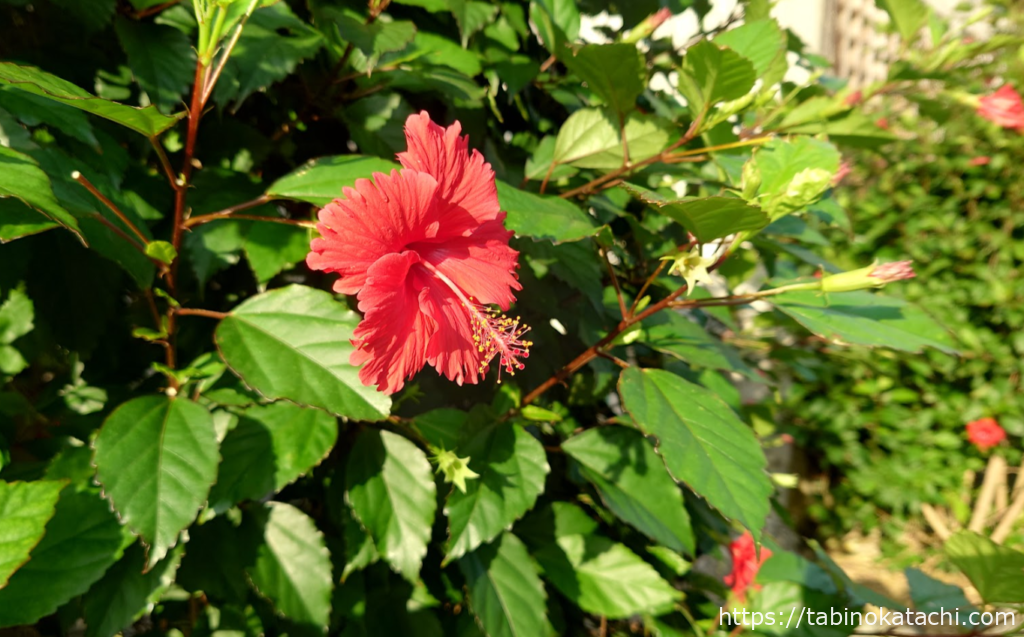 ホテルの敷地内には、ハイビスカスなどの木々が植えられており、敷地を歩いていてもなごみます。
