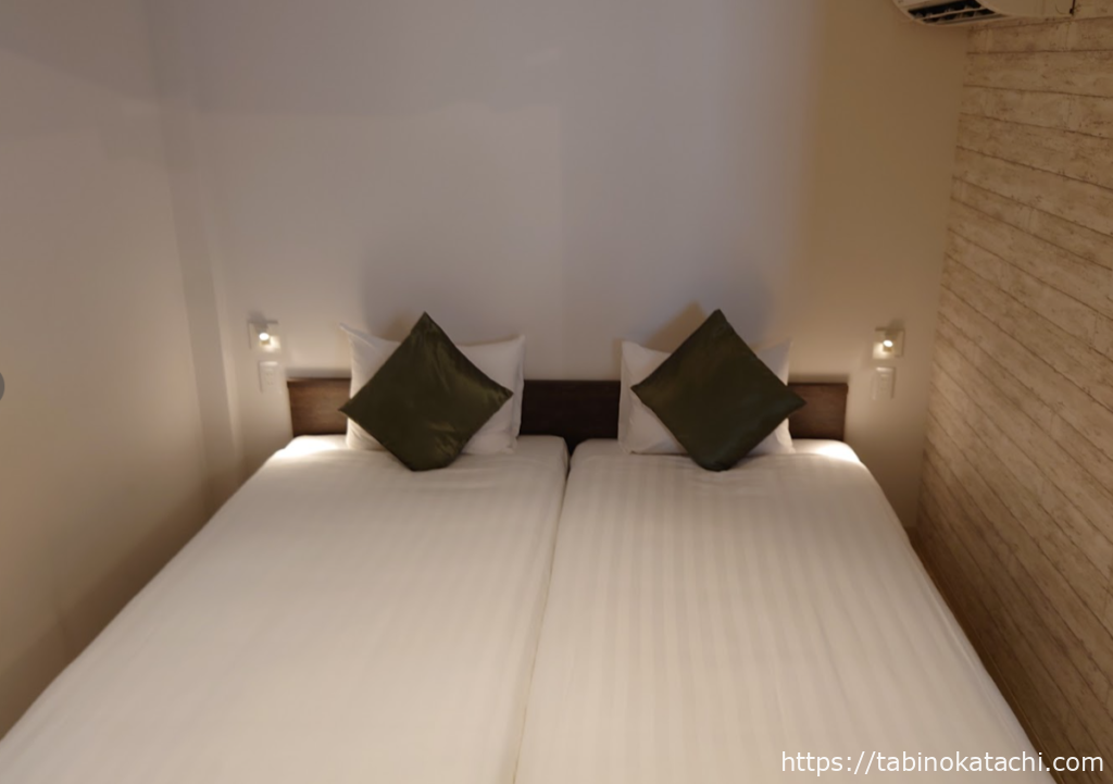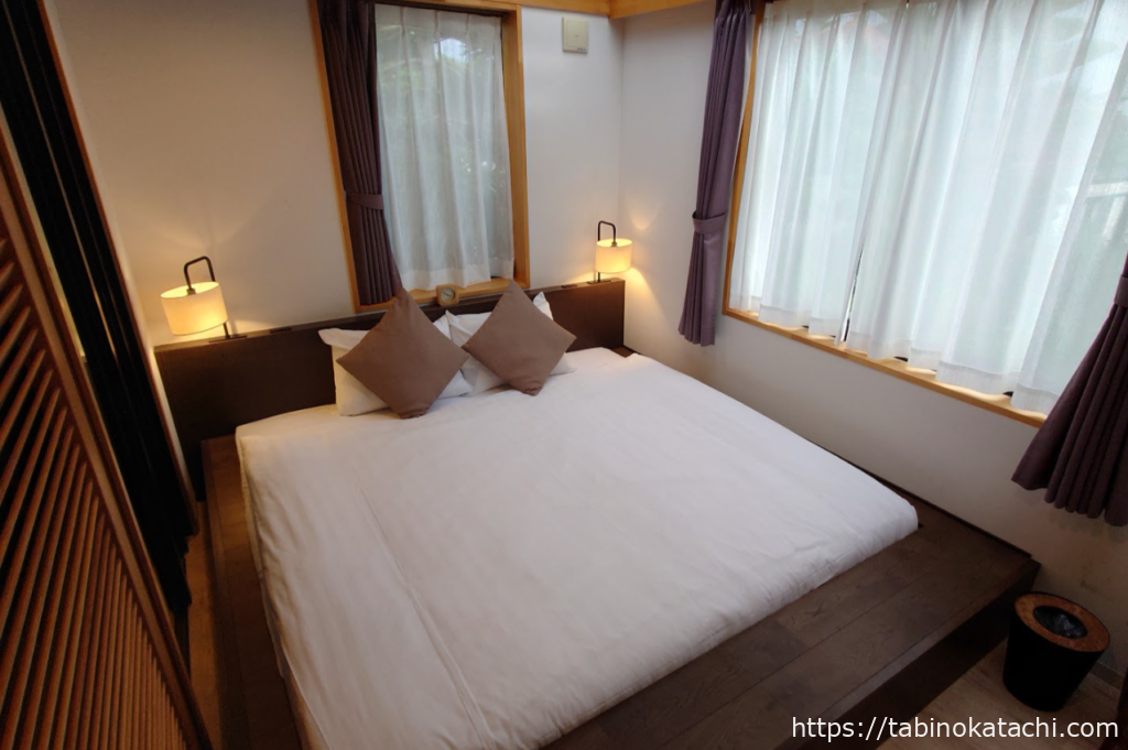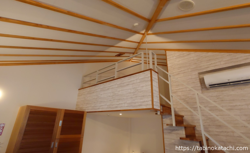 お部屋は、ワンタイプで、すべてロフト付きです。テラスなどもいれると、総面積は65㎡(お部屋+ロフト:43㎡+12㎡、テラス:10㎡)。4名までが宿泊することができ、4部屋で、1つのヴィラが構成されているようです。