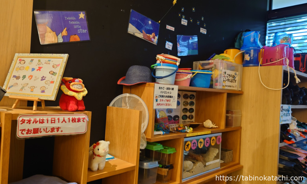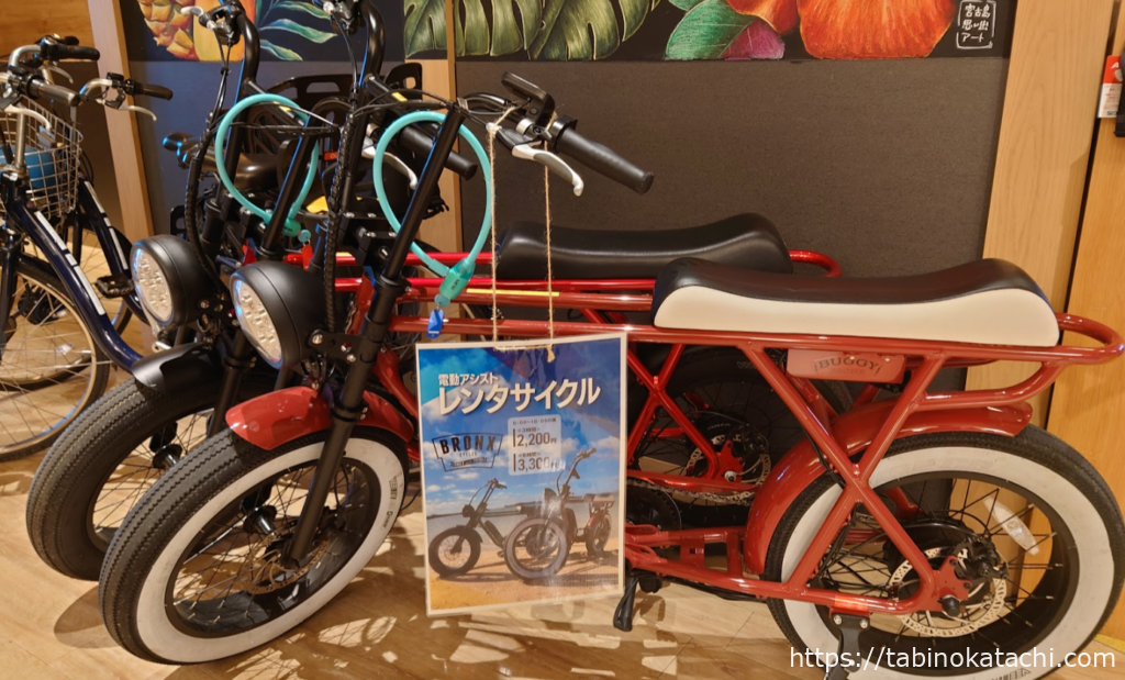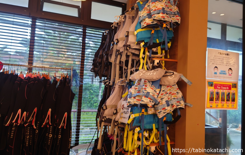また、レンタサイクルや、ウェットスーツ、ライフジャケットなども揃っていました。