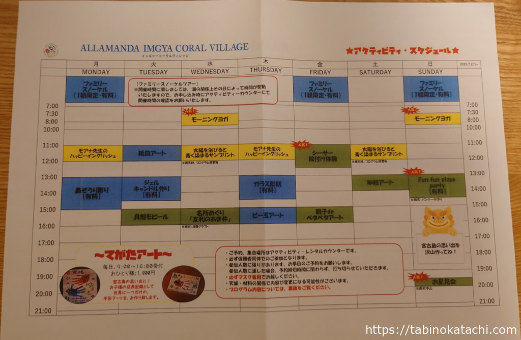 ホテルのアクティビティには参加しなかったのですが、無料なものから有料なものまで、色々用意されていました。比較的、参加年齢の対象が広く、どなたでもOKや2歳からOK!というプログラムもあるので、小さいお子さんと一緒に楽しむこともできそうです。