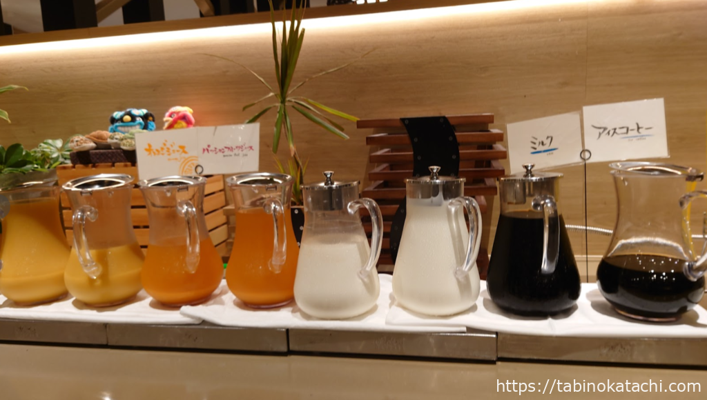 朝食は、レセプション棟にあるレストランコーラルブルーでいただきます。7:00~10:00の間で自由に行けばよく、ビュッフェスタイルになっています。