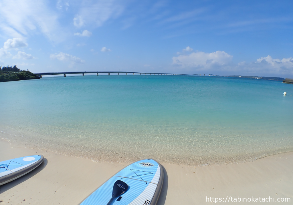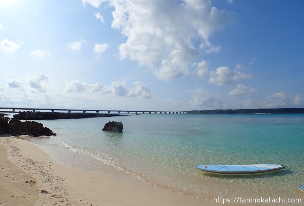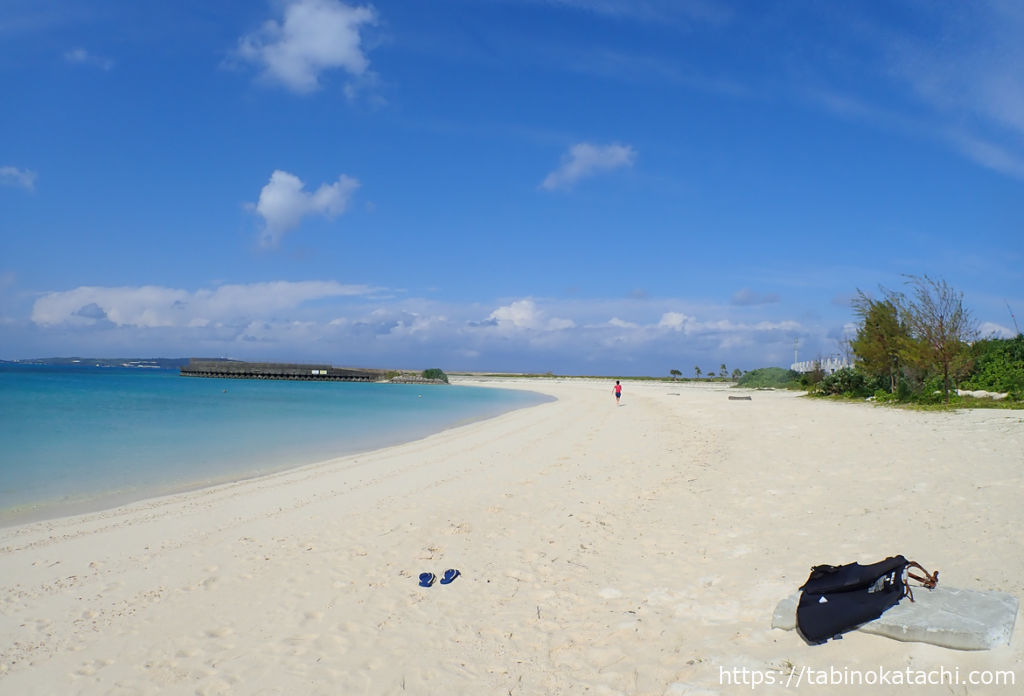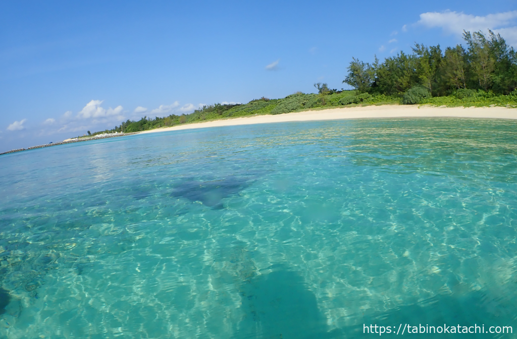 ランチのあとは、休憩もかねて来間島の南側にあるムスヌン浜へ。砂浜がとっても綺麗でした!