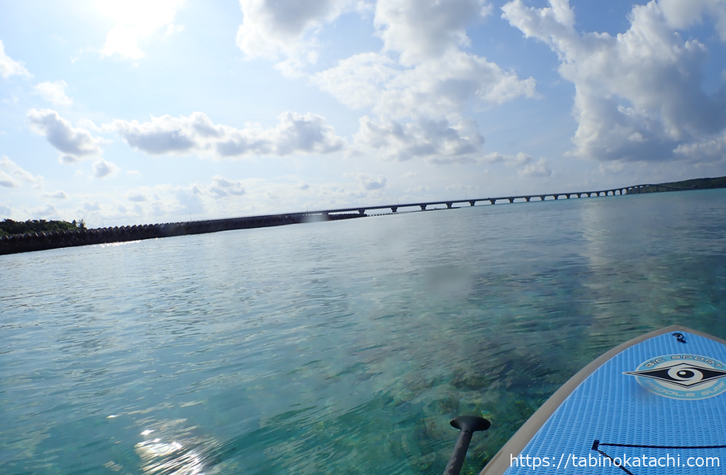 SUP 伊良部大橋目指してGO! 建設中のヒルトンも