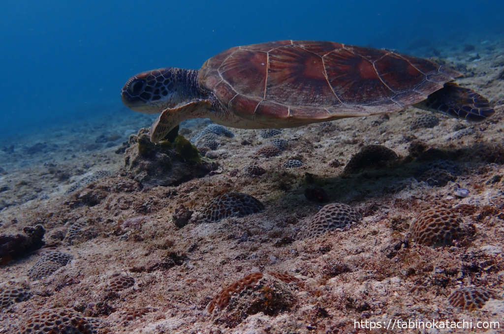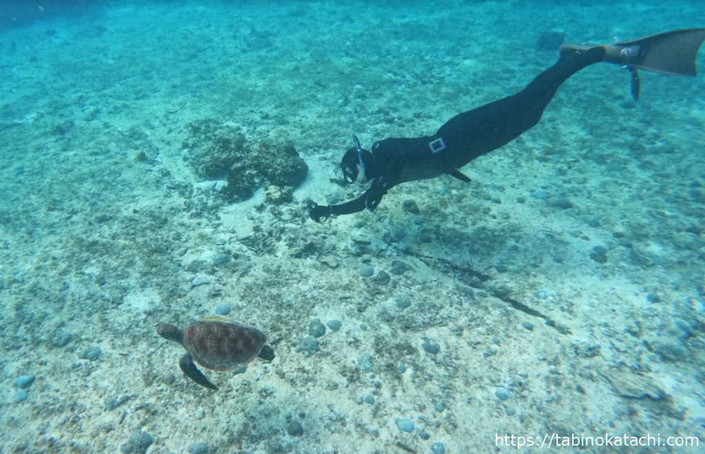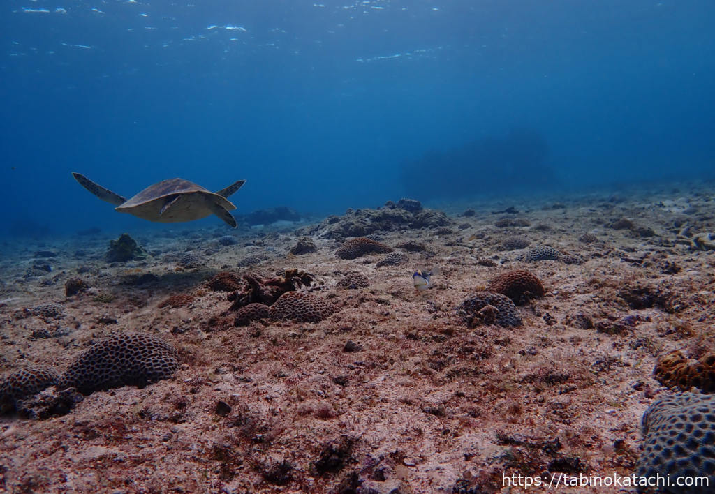 この日は、入ってすぐの浅瀬からカメちゃんがいてご挨拶。そのあとも、3-4匹みかけて一緒に泳いだので、まさにカメ祭りの日でした。