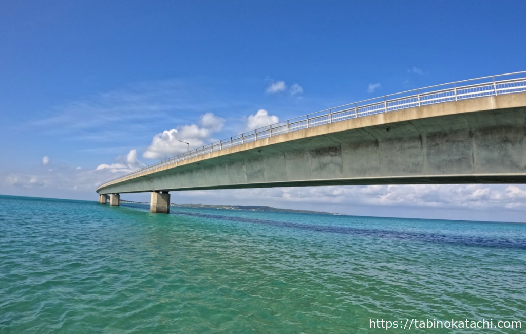 伊良部大橋は、長さが3,540kmあり、さん(3)ごの(5)し(4)ま(0)って覚えられますよ。海中道路や取付橋梁をいれると4,310kmあるそうです。