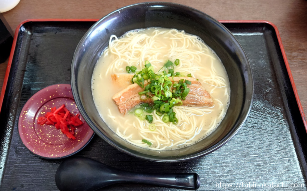 私と、あめおくんは、お店一押しの「まるかみそば」。お出汁がおいしくて、飲み干しちゃいました。お肉もトロトロ。ちぢれ麺がお出汁にからんで、また美味しいです。