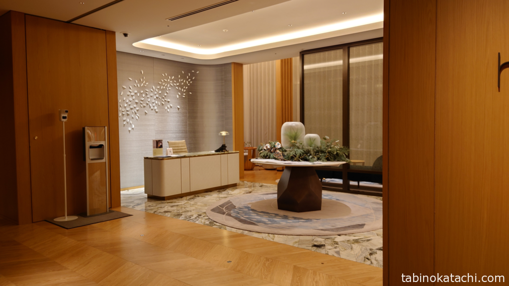 プールやサウナの利用は、5階のエレベータホールを降りてすぐにある、受付に立ち寄って、手続きが必要でした。氏名やお部屋番号を記載し、更衣室のカードキーとタオルをうけとります。お部屋のキーとよく似たカードキーなので、間違わないように注意ください!