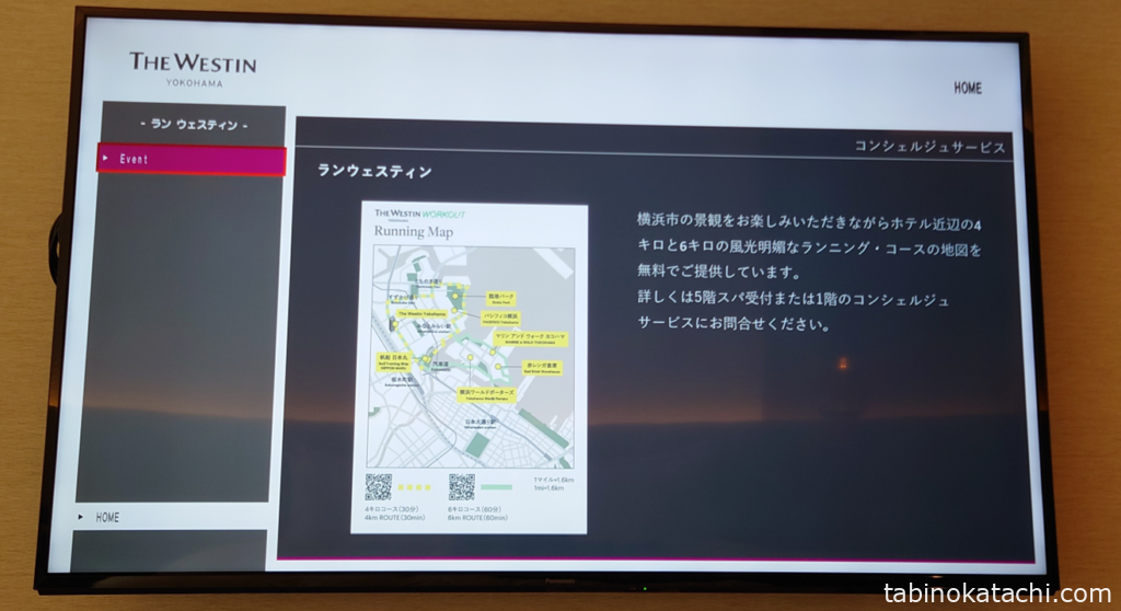 このほか、ランウェスティと名付けられたホテル周辺のランニングコースもご案内があったので、お天気が良い日はランもいいですね!