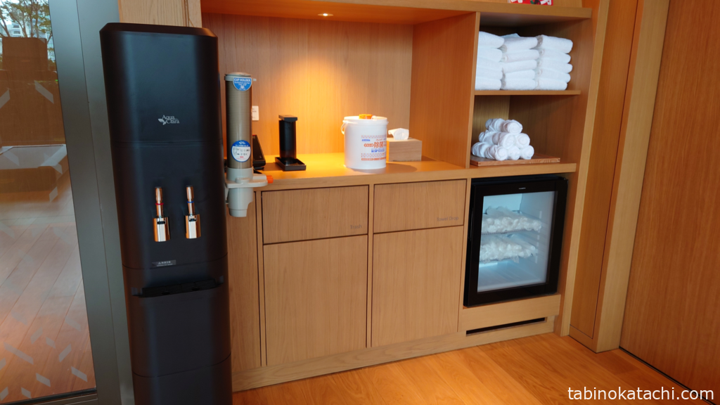 プールと同じフロアに、ジムがあります。今回の滞在では、プールとサウナを中心に楽しんだので利用しなかったのですが、マシーンも十分ありますし、タオルやおしぼり、ウォーターサーバ等の用意もされていましたので、エクササイズもバッチリです。