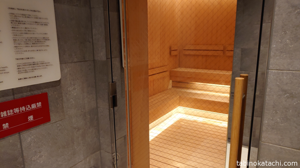 男性はドライサウナです。ゆったり座って4人、詰めればもう少しいけそうな広さでした。TVや音楽はなく、WHITE TEAの香りだけが漂います。あめおくんの感想からいうと、それほど高温でもないのと、結構人の出入りがあって、温度が下がってしまうので、息苦しさなどは、ないそうです。でも、しっかりあったまり、冷水シャワーを浴びれば最高!とのことでした。