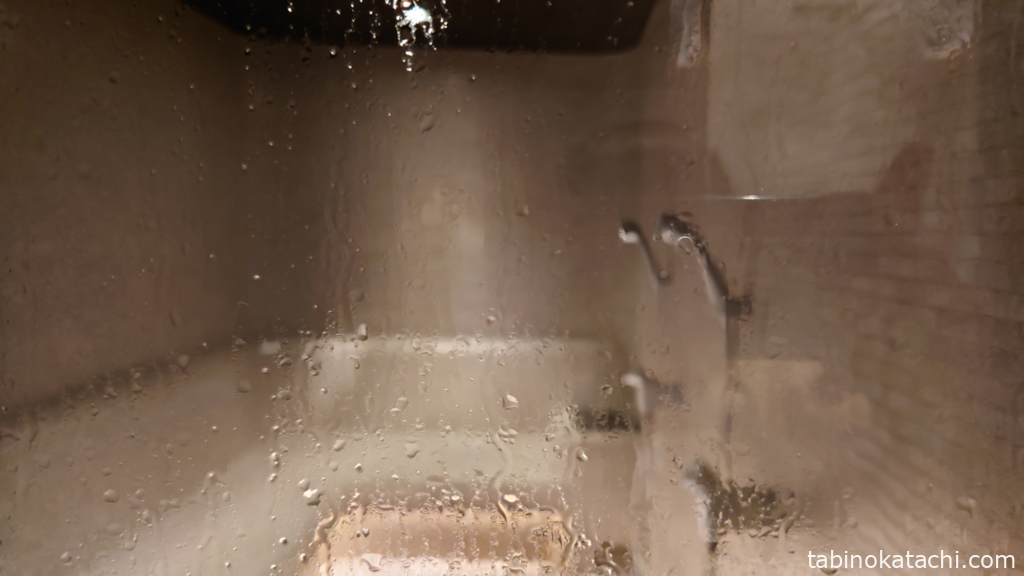 私の体感でしかないのですが、ミストサウナに比べて、スチームサウナのほうが温度が高く感じて、体が温まります。湿度も、70℃近くあるので、ドライサウナのカラカラ系ににあるような息苦しさは全くなく、でも、体温がどんどん温まる感じです。サウナの中はタイル敷きになっていて、1段のみ。天井からミストが降ってくるわけではなく、お部屋全体に蒸気が部屋中に満ちていて、まるで蒸気に囲まれている感覚です。
